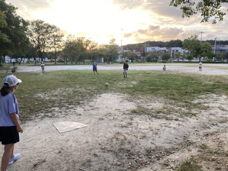 10月にはキックベース大会が行われました。緑区にある他の学童保育所同士での対抗戦です。あおぞら学童でも低学年、高学年でキックベースチームを結成し、練習を重ねて、大会当日に臨みました。